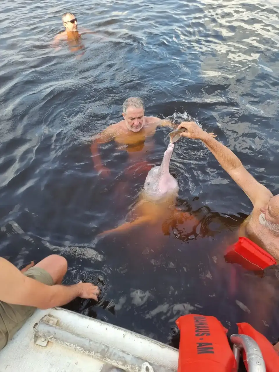 • Flight from Iluminado to Novo Airão • Drinks and snacks at Mirante do Gavião in Novo Airão • Swim with river dolphins • Leave with the boat to sleep by the sandbank which will be the next take off
